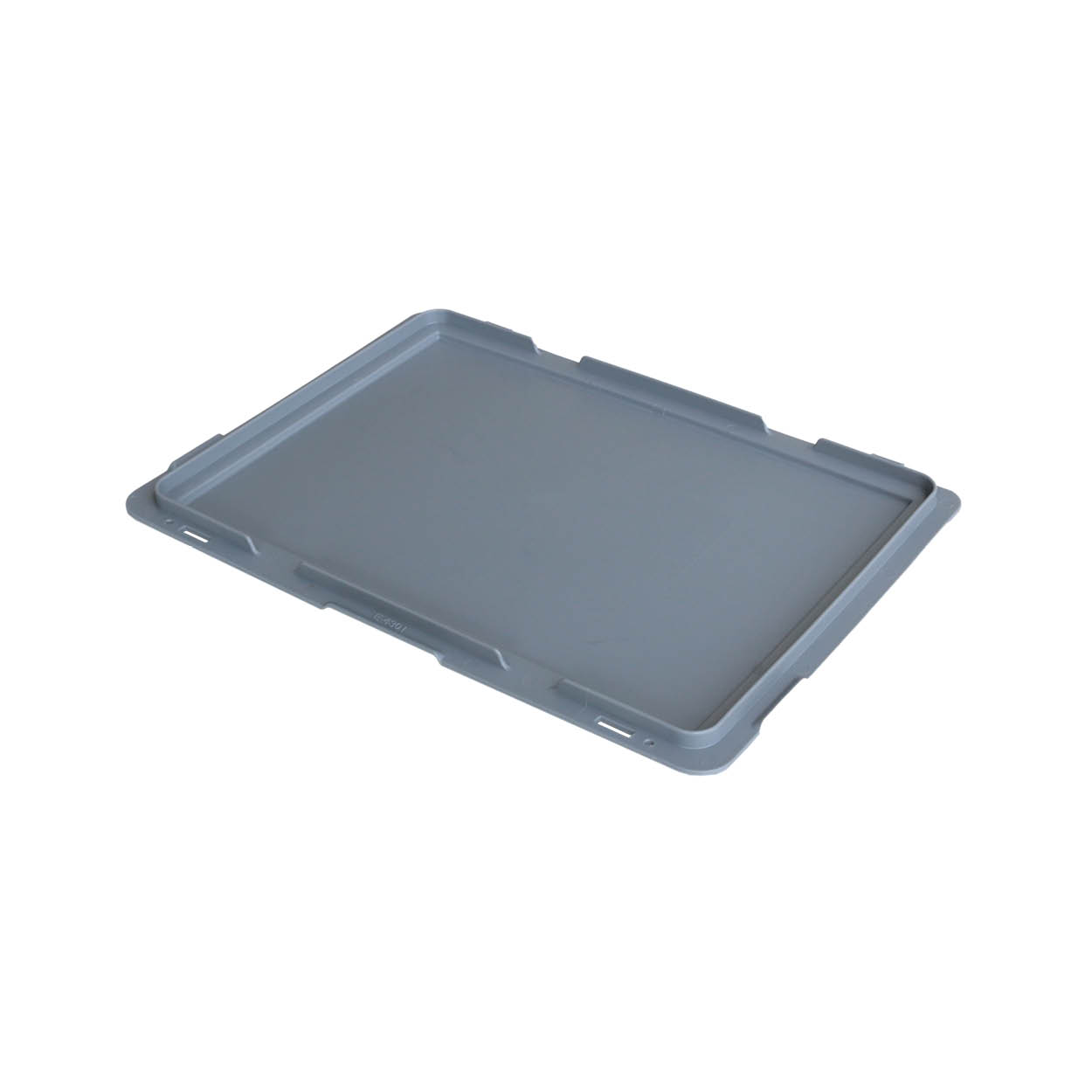 Scharnierend deksel, 400 x 300 mm voor onze Euronorm bakken. Leverbaar in lichtgrijs, rood, blauw en groen. Optioneel met schuifsluitingen