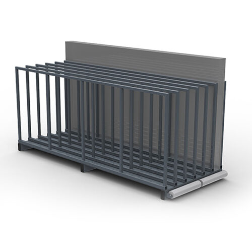 Zwaar uitgevoerde unit voor verticale opslag van (rest) plaatmateriaal. Voorzien van een rol aan uitneemzijde voor eenvoudig in- en uitrollen van enkelstuks platen. De aangeboden Verto is uitgevoerd in 10 vakken en leverbaar in 3 afmetingen.